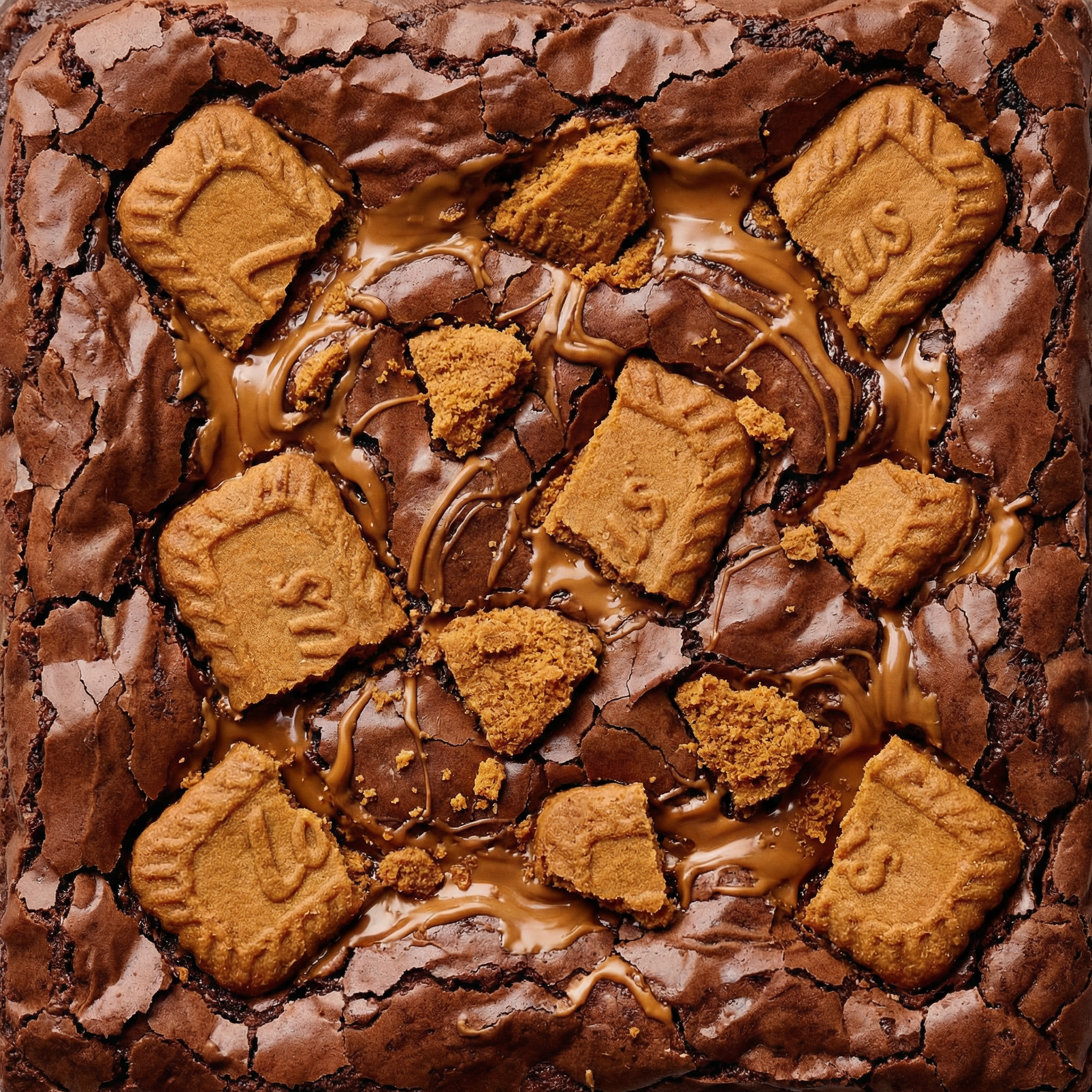 Chocolate brownie with a creamy Biscoff center and a crunchy Lotus biscuit topping. Warm caramelized spice flavor that pairs perfectly with the chocolate.